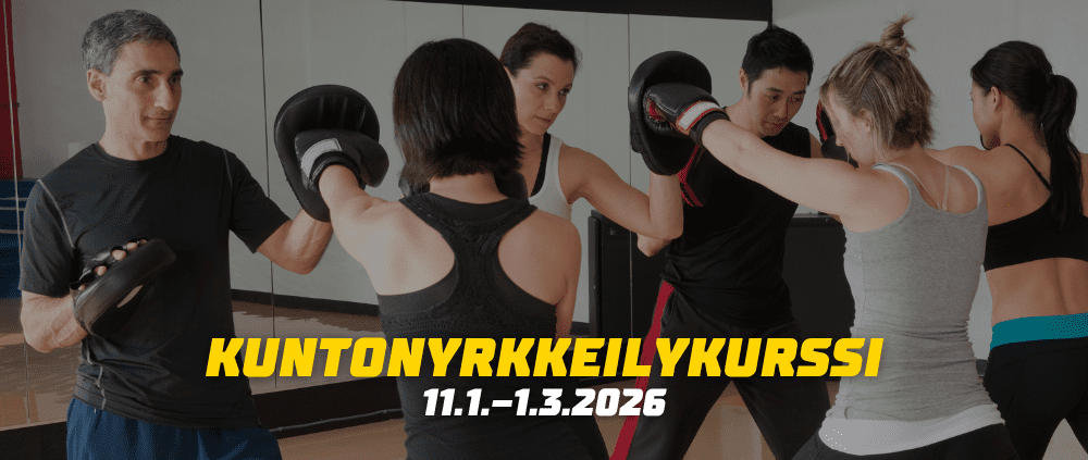 - Alkeiskurssi sunnuntaisin klo 17.00–18.30 – ensimmäistä kertaa kuntonyrkkeilyyn osallistuville